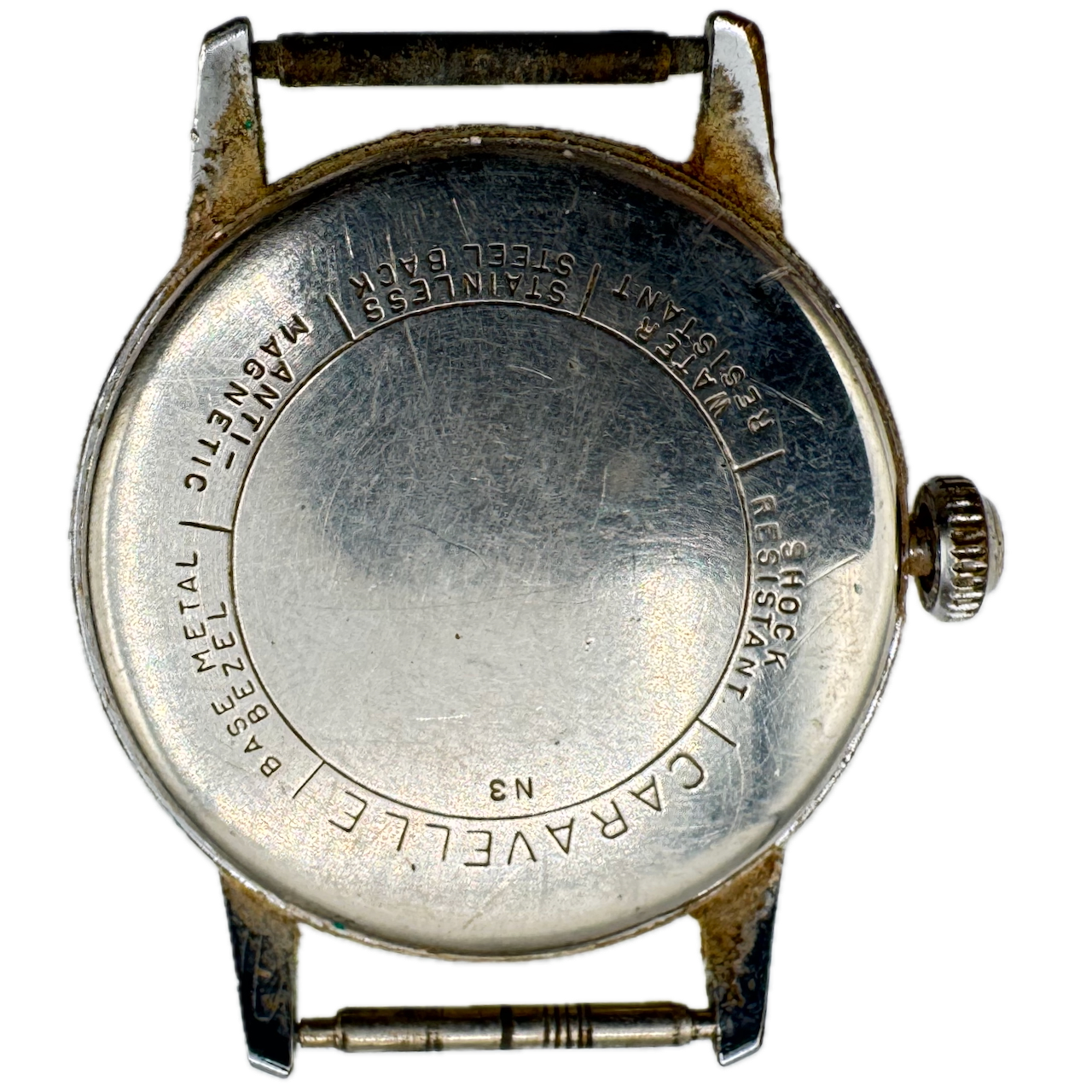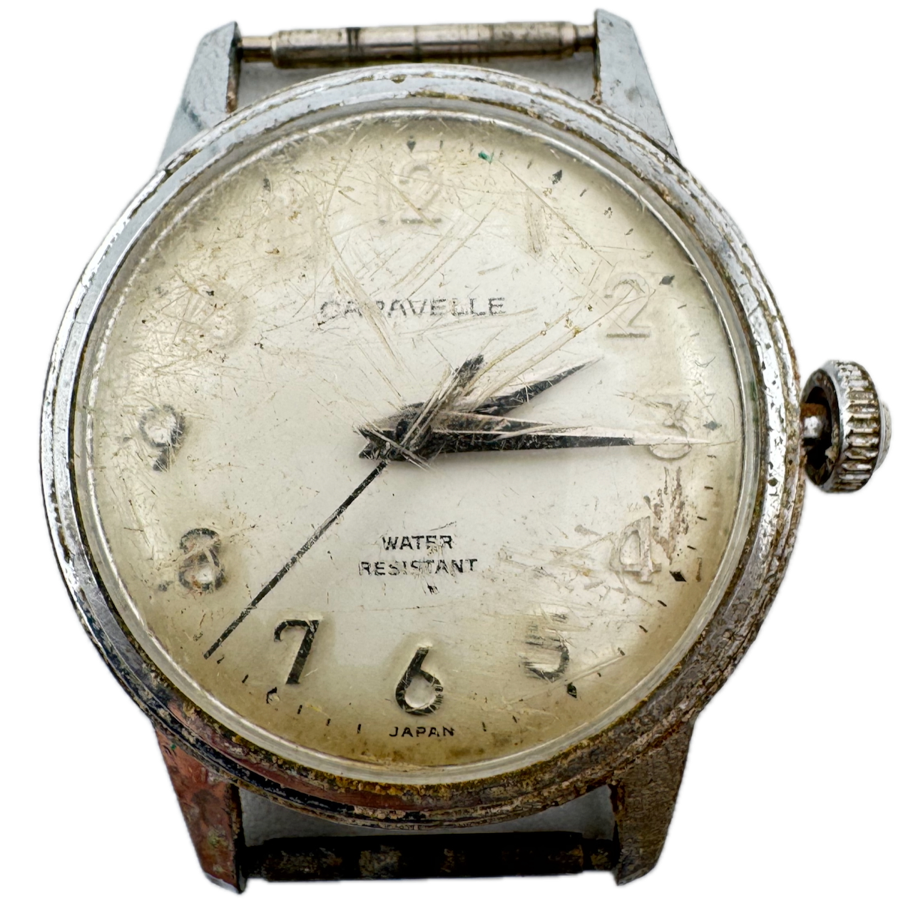 Vintage 1973 Caravelle White Dial Men's Mechanical Wristwatch Steel & Chrome