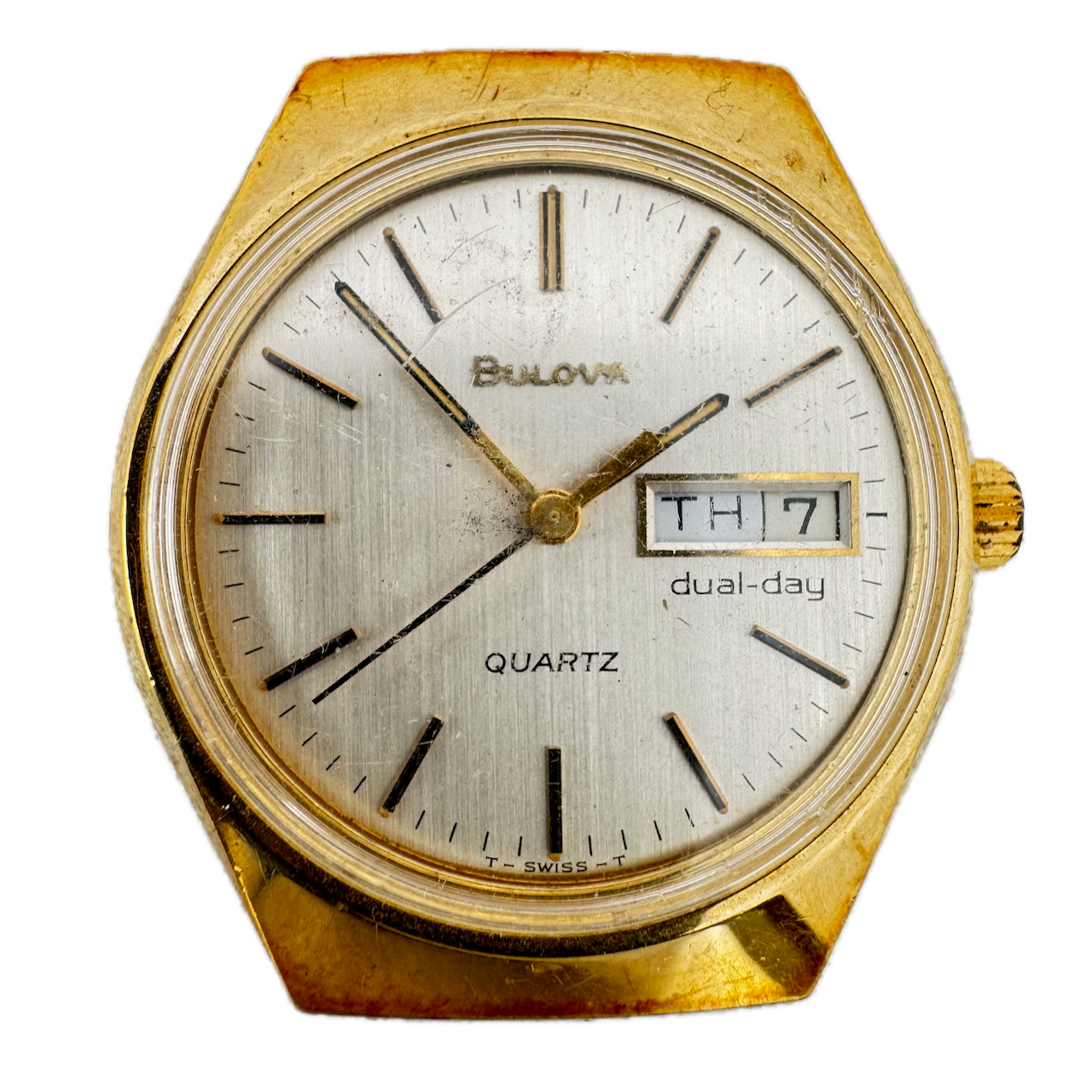 Vintage 35mm Bulova Dual Day Men's Quartz Wristwatch 242 3.10 Swiss Gold Tone