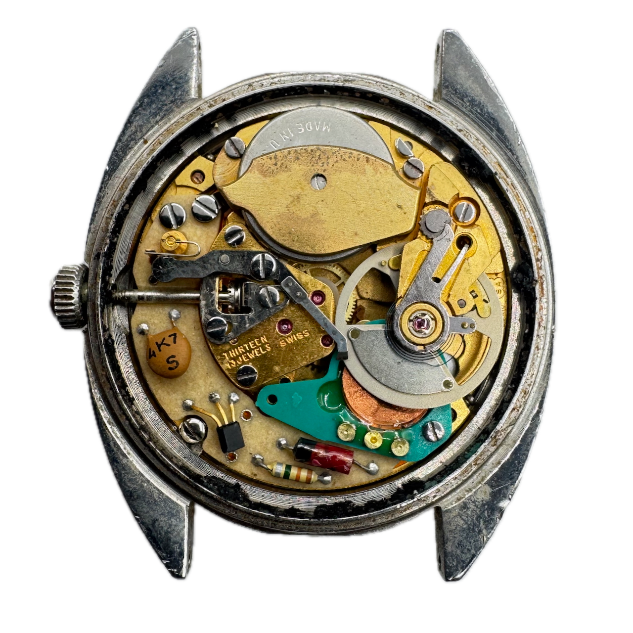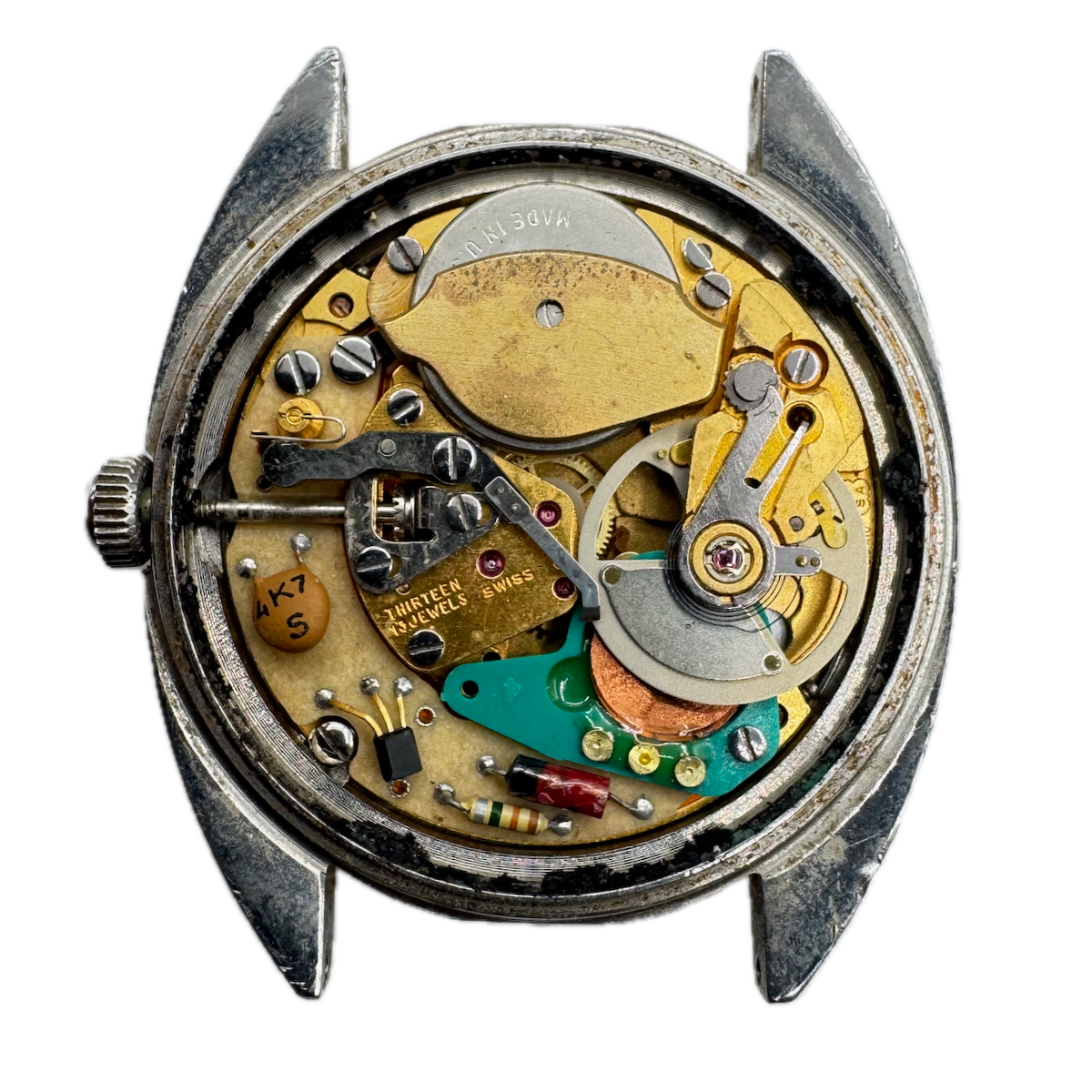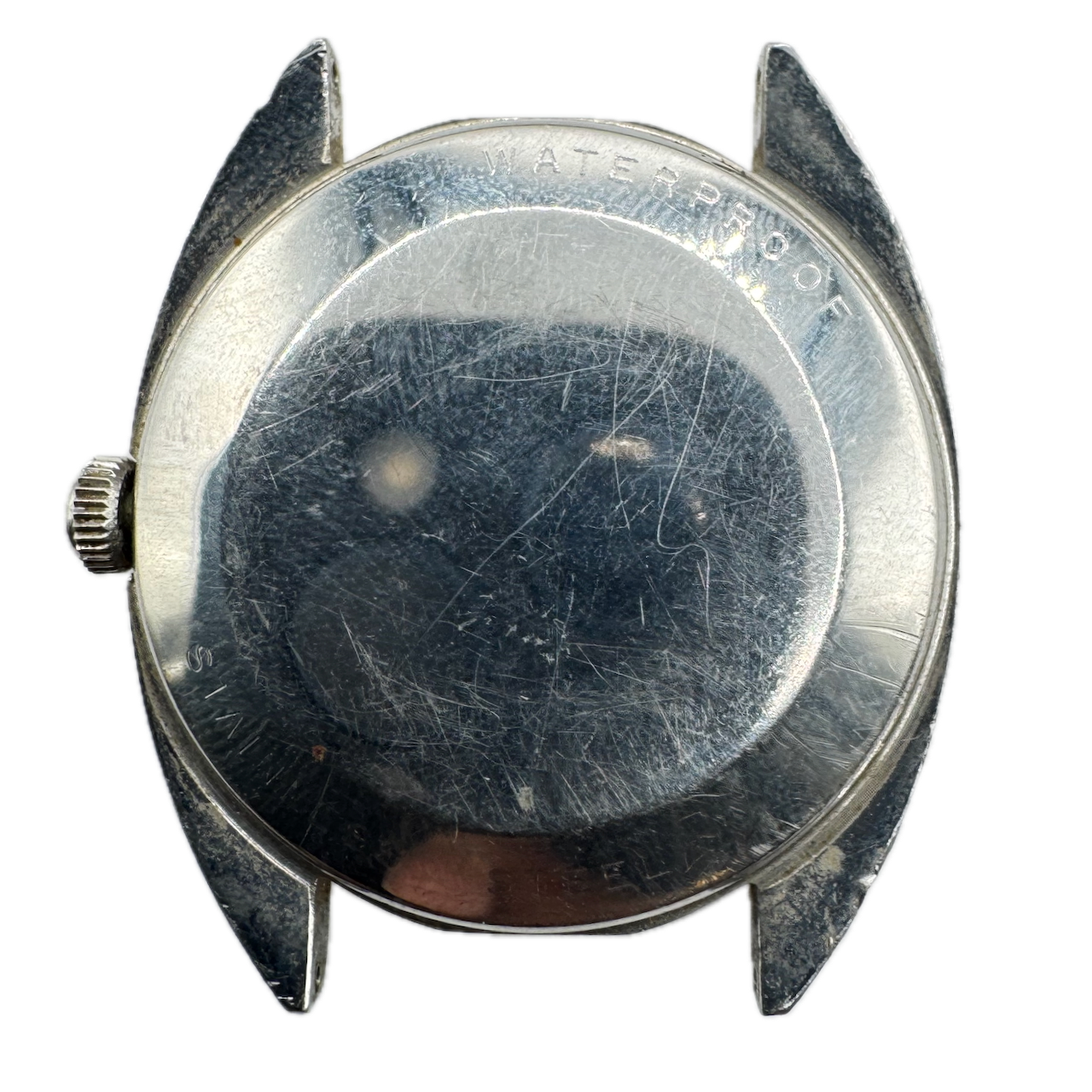 Vintage 35mm Dynotron Blue Date Men's Electric Wristwatch Swiss Steel