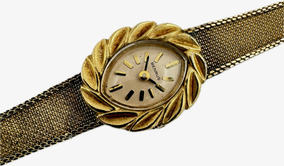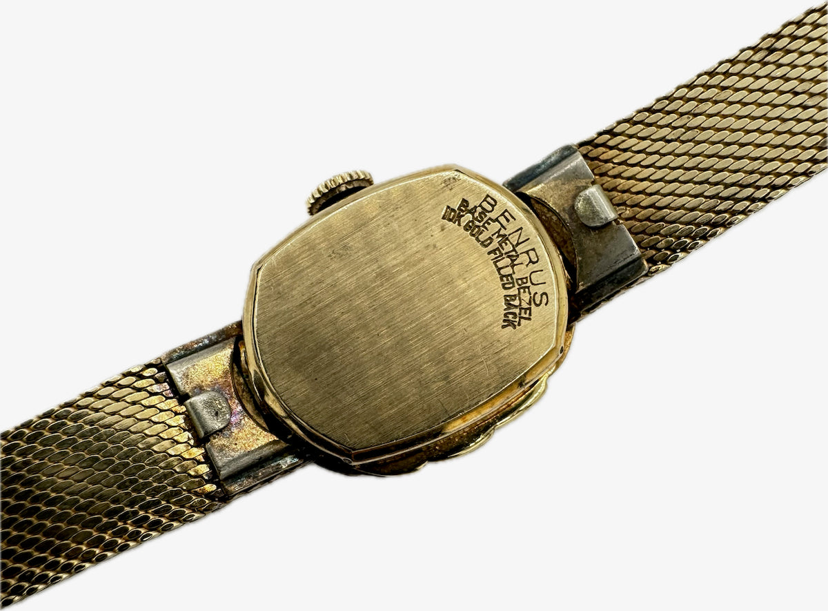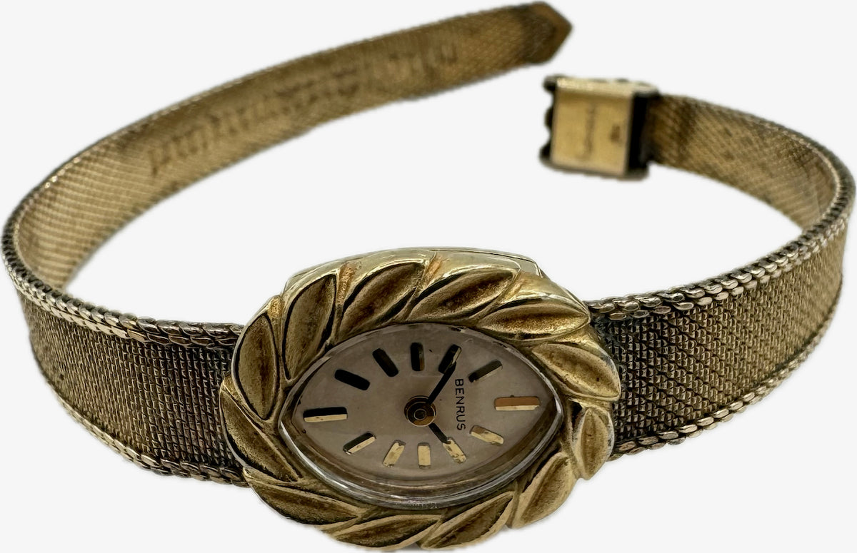 Vintage Benrus Leaf Bezel Ladies Mechanical Wristwatch 10k Gold Filled