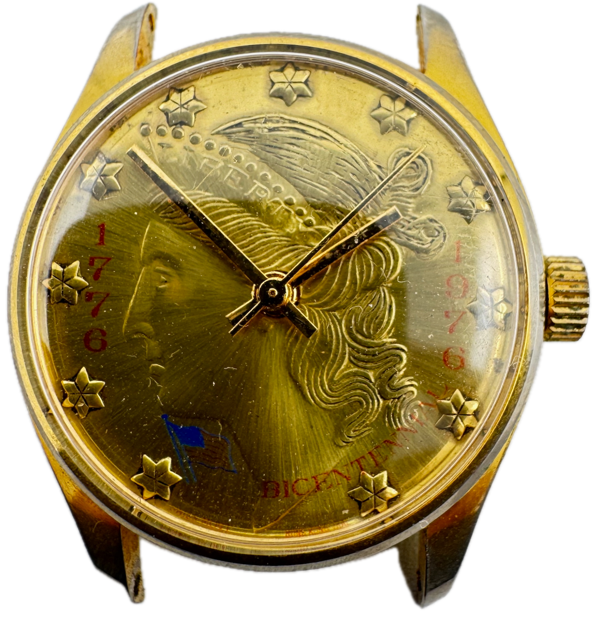 Vintage Bicentennial Statue of Liberty Men's Mechanical Wristwatch Gold Tone