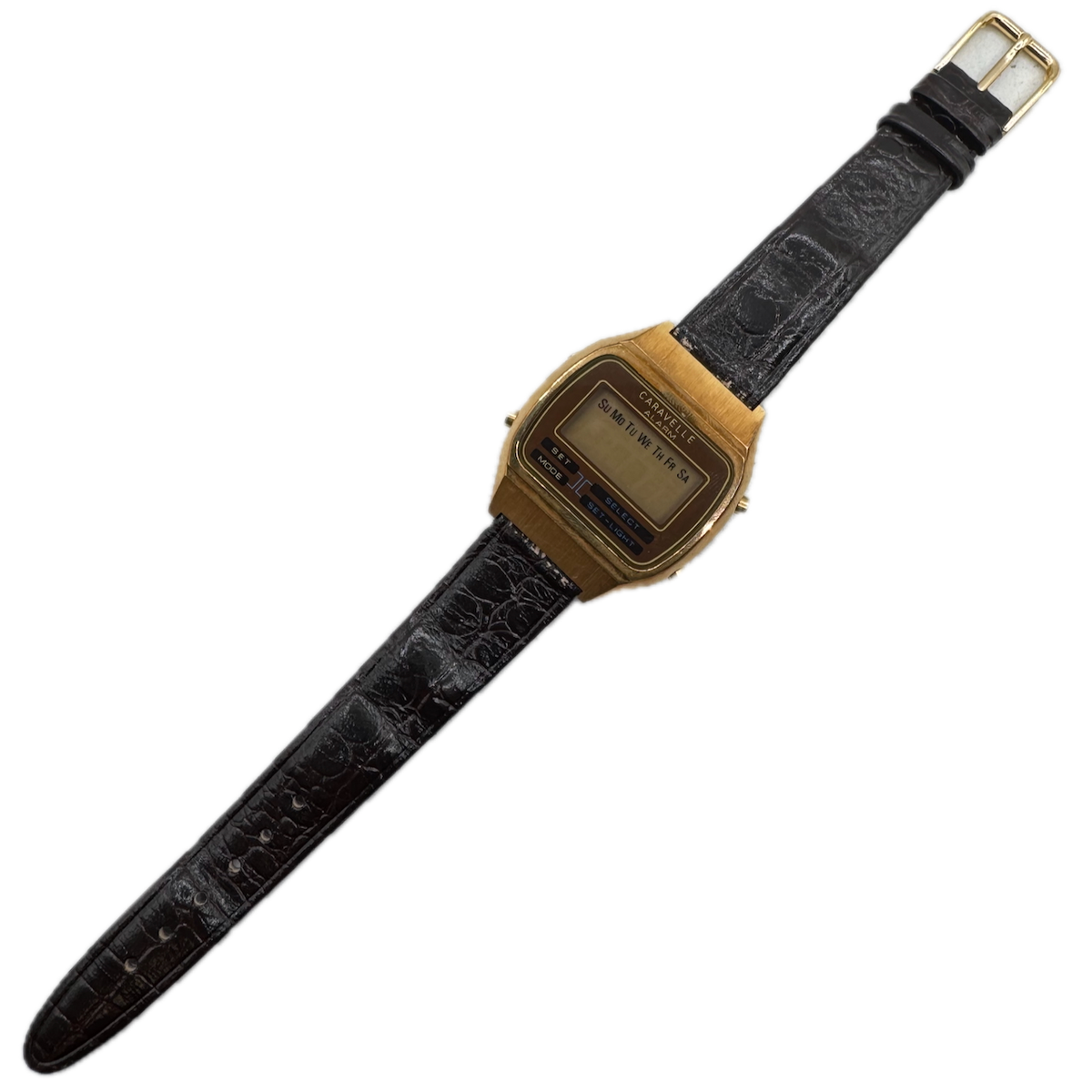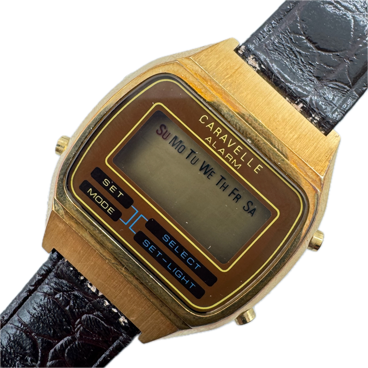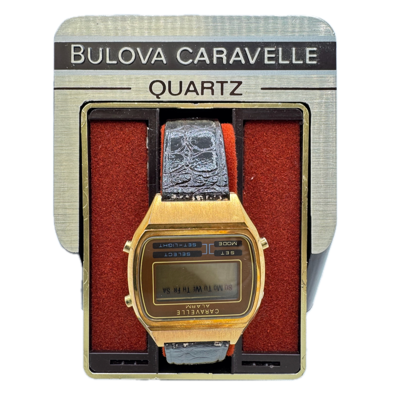 Vintage Bulova Caravelle Alarm Men's DigitalWristwatch 3226 Gold Tone With Box