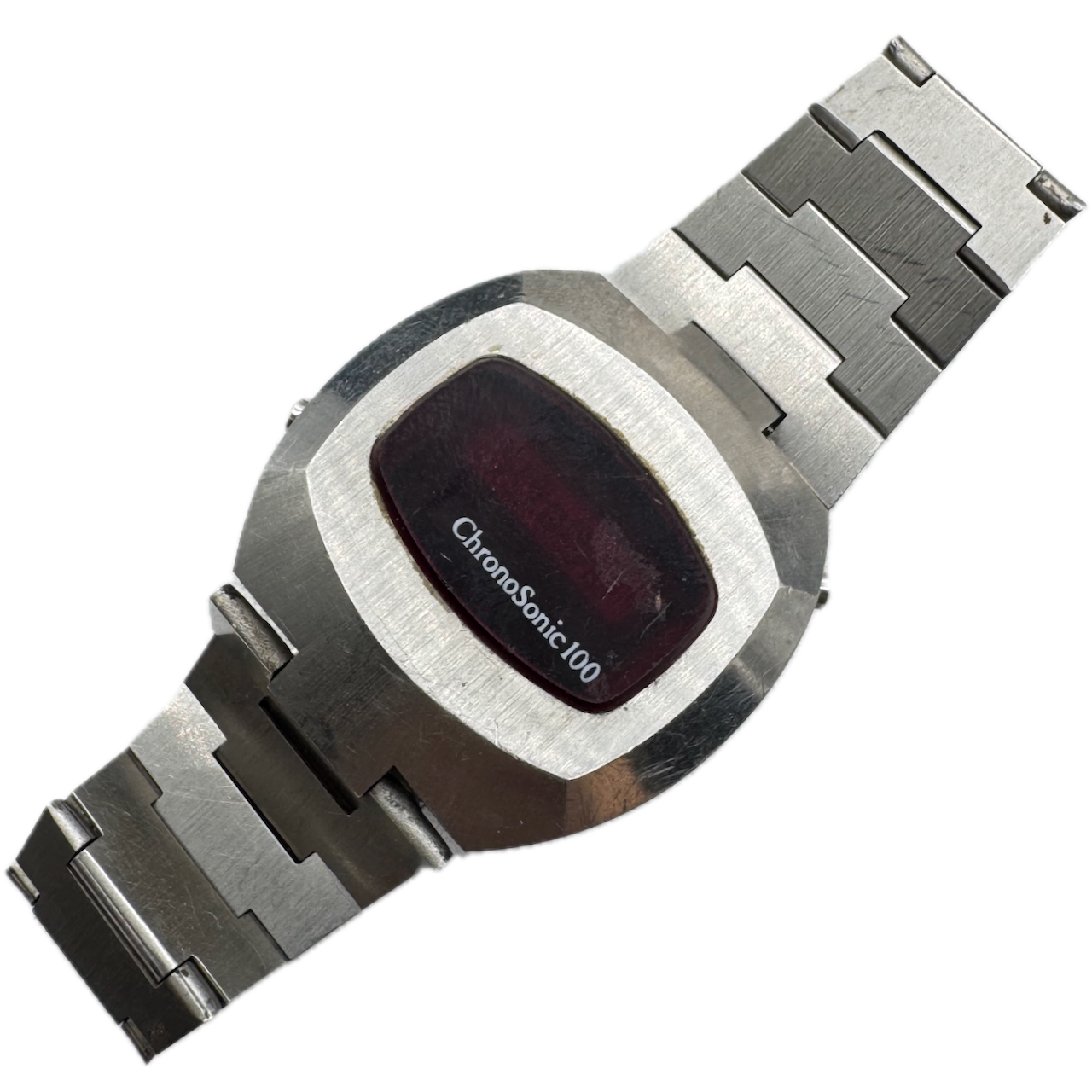 Vintage ChronaSonic100 Time Computer Men's Digital LED Wristwatch Japan Steel