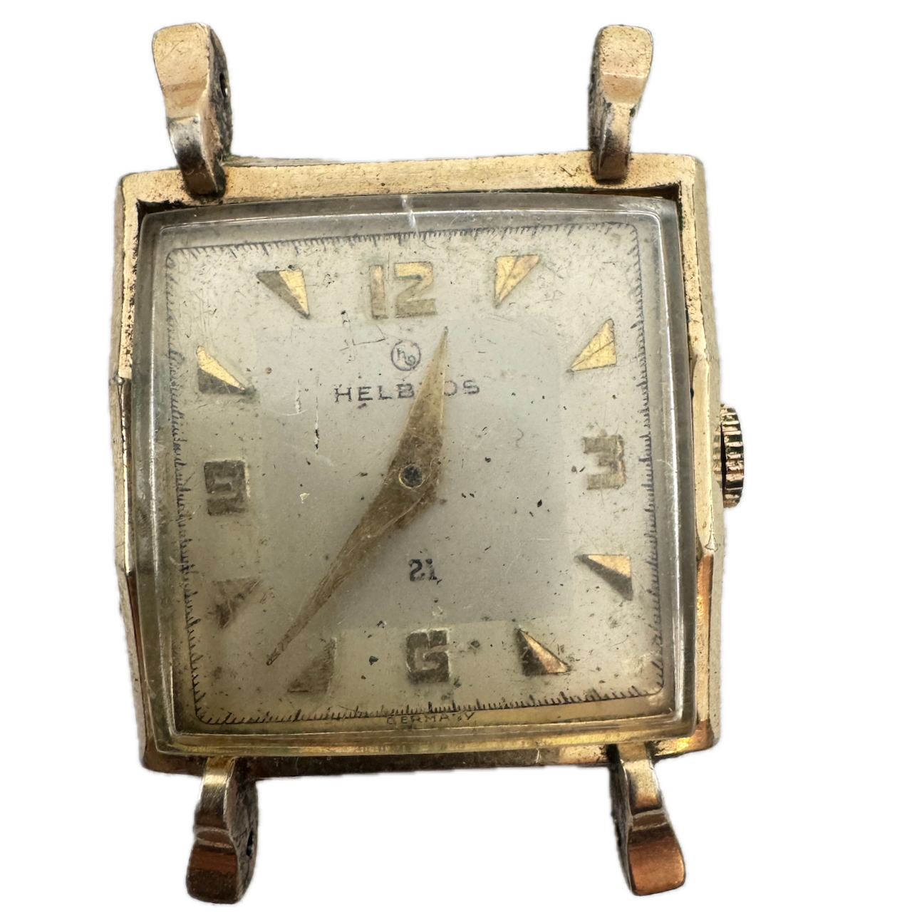 Vintage Helbros Square Men's Mechanical Wristwatch P 61 GermanySteel & 10k RGP
