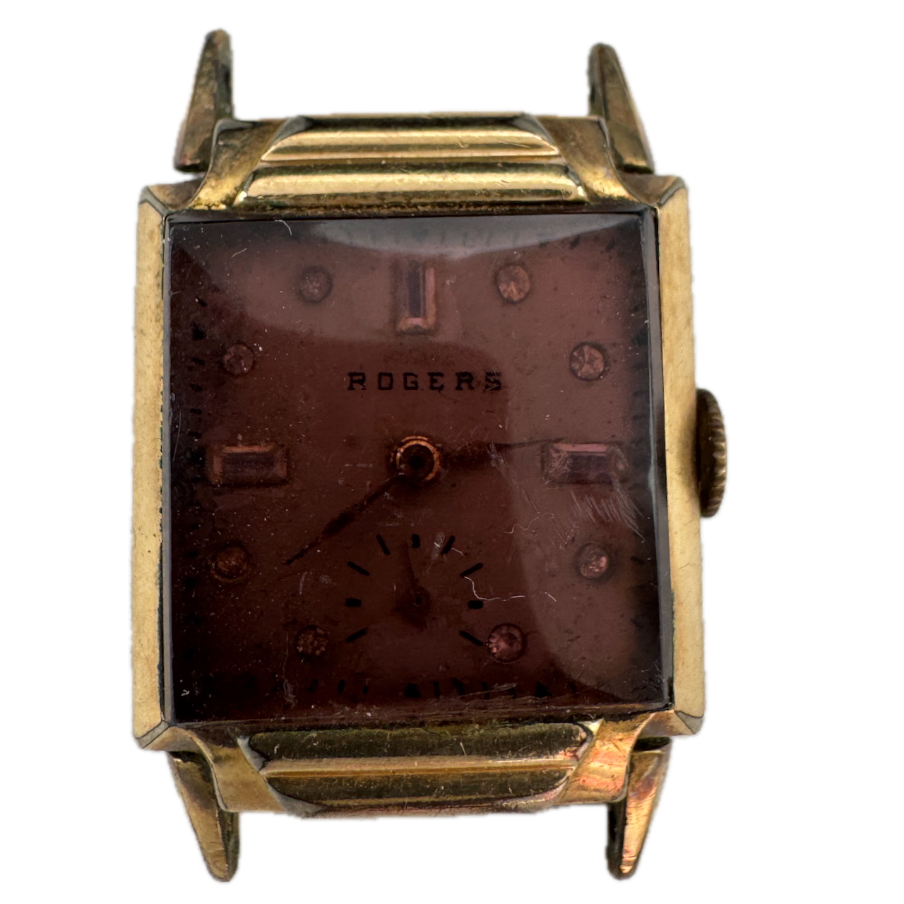 Vintage Rogers Jeweled Art Deco Men's Mechanical Wristwatch Steel & 10k GF