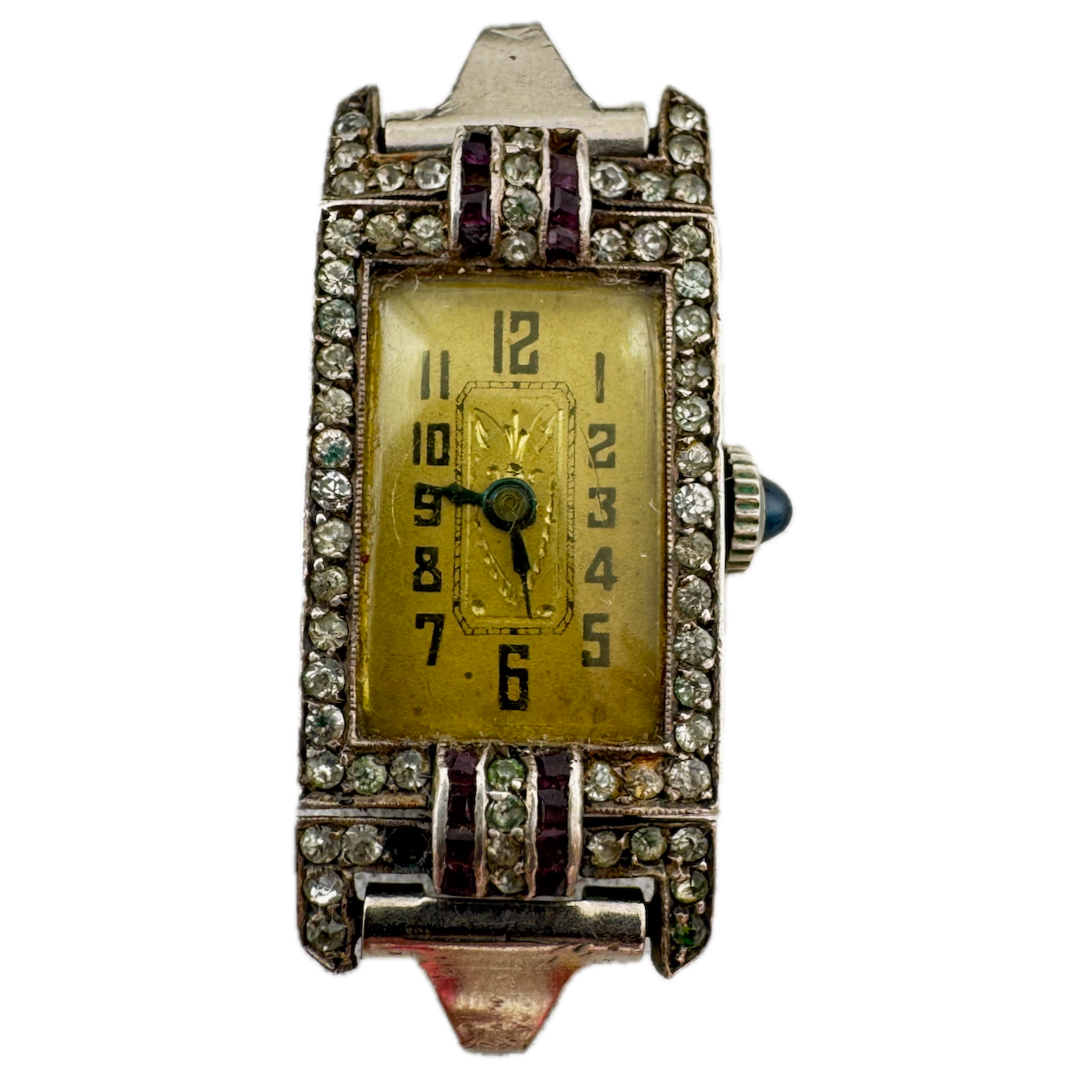 Vintage Scilla Diamond Art Deco Ladies Mechanical Wristwatch Sterling Silver