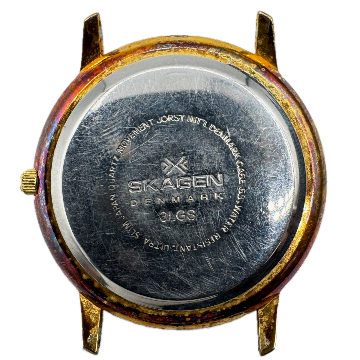 Vintage Skagen 3LGS Denmark Two Tone White Men's Quartz Wristwatch Gold Plated