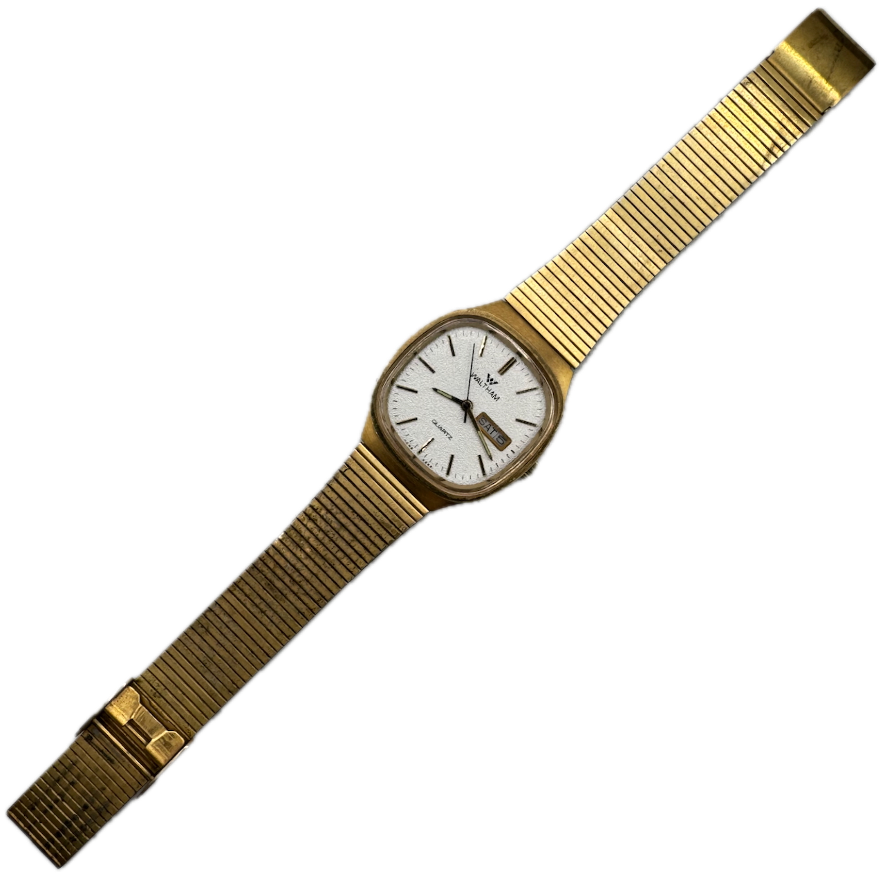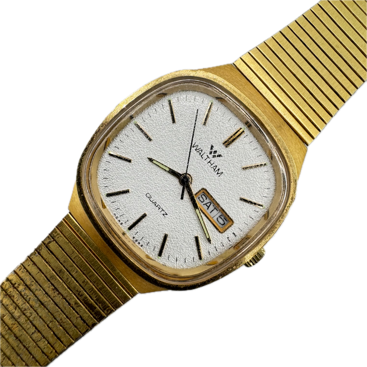 Vintage Waltham Y838-855 Snowflake Day Date Men's Quartz Wristwatch Gold Tone