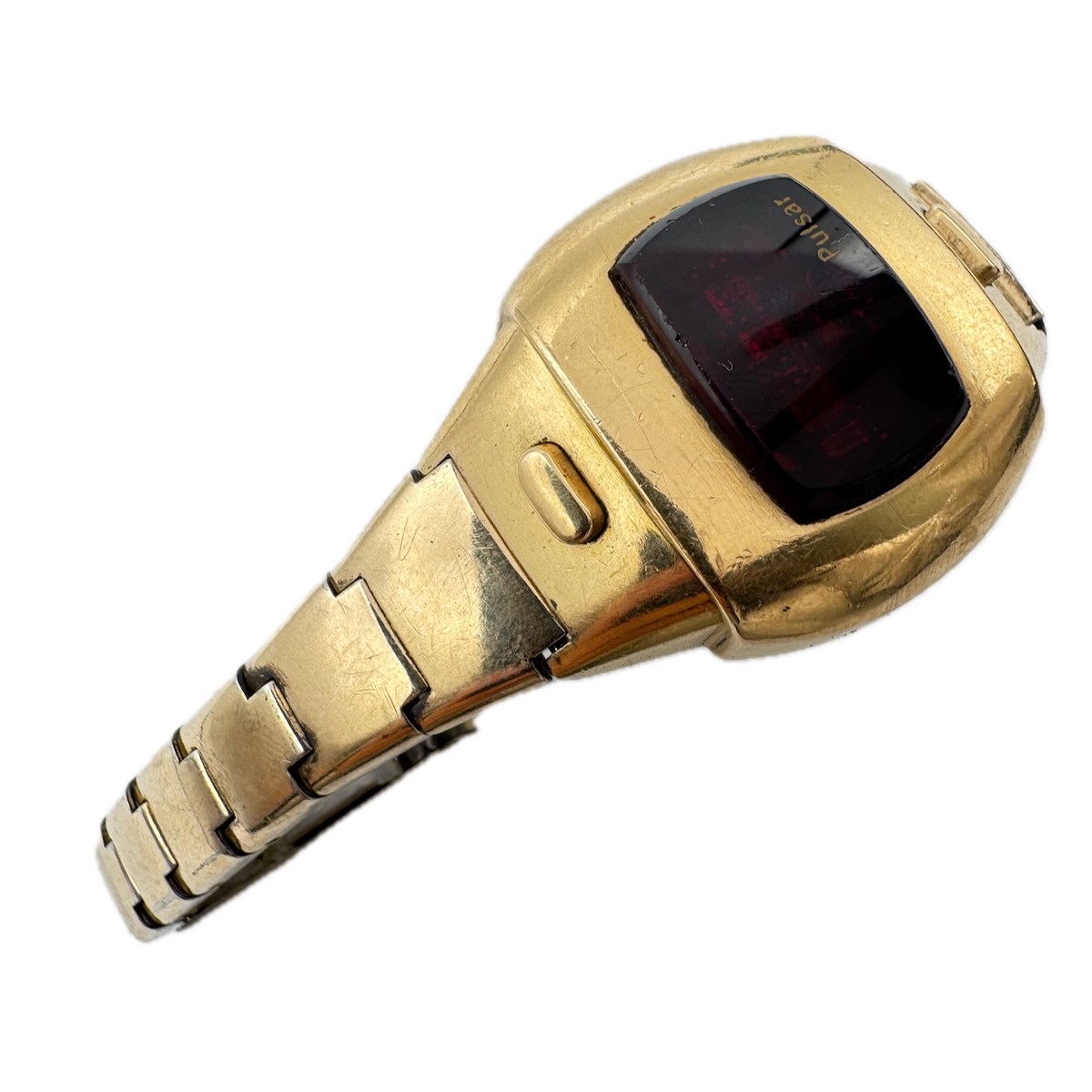 Vintage Pulsar Time Computer Ladies Digital LED Wristwatch USA 14k Gold Filled